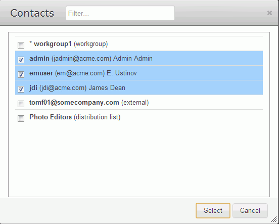 button. The contact list will show your Faspex users, workgroups, and distribution lists. If you are permitted to send