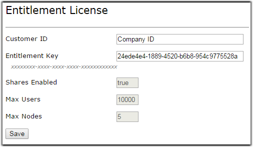 After entering a valid ID and entitlement key, Shares should display