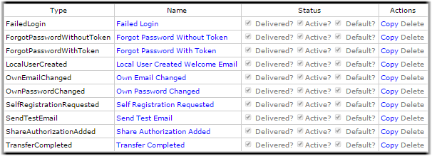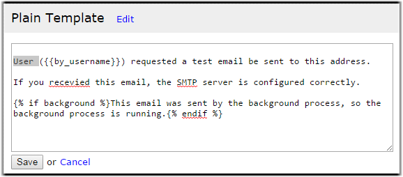 The page that appears when you edit a new template includes three sections for modifying the email template: