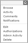 | Activity | Select Activity from the drop-down list to the right of the share's name. A list of all activity that has occurred on the selected share appears. You can also search for activity based on tagged events or a date range. |