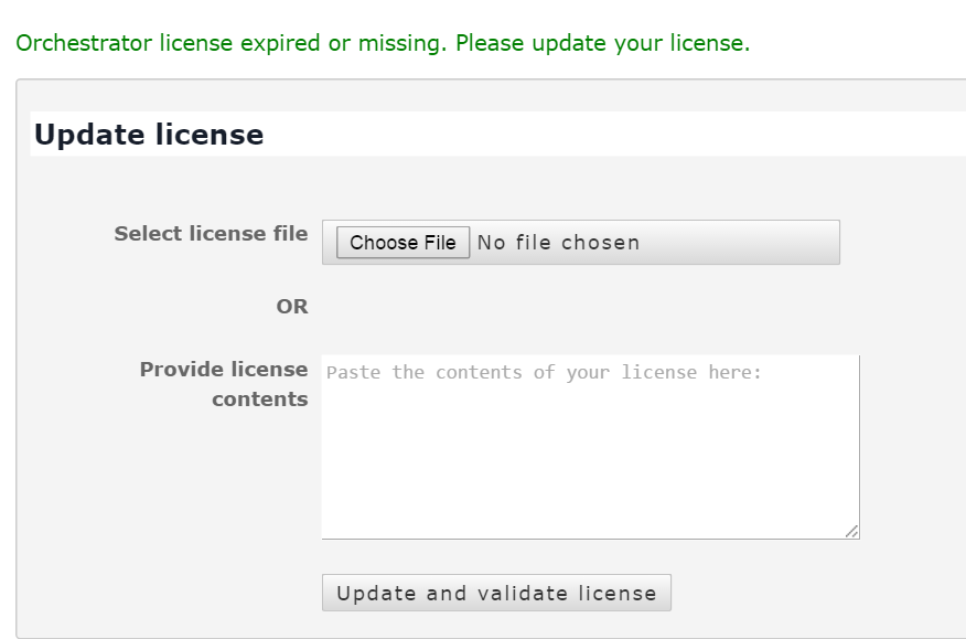 Note: The Orchestrator UI displays the currently installed version and license expiration date in the footer of every page.